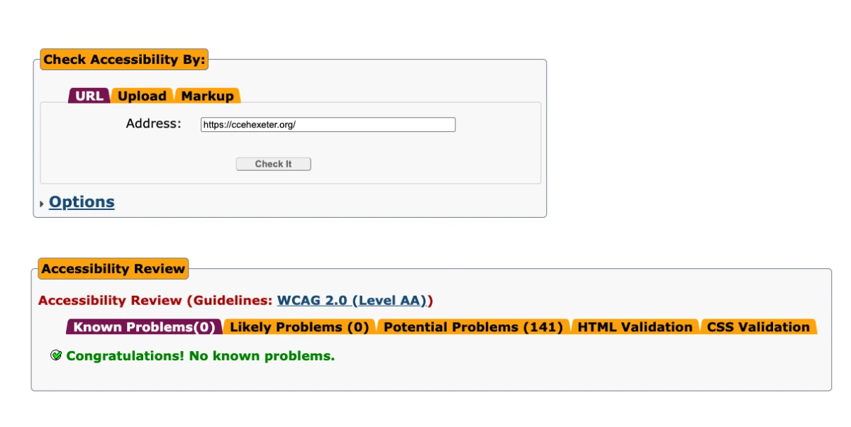 As well as applying common sense throughout the build, all pages are tested using AChecks — a no-nonsense accessibility checker that stands out from most tools because it simply reports the facts, without trying to upsell fixes.
